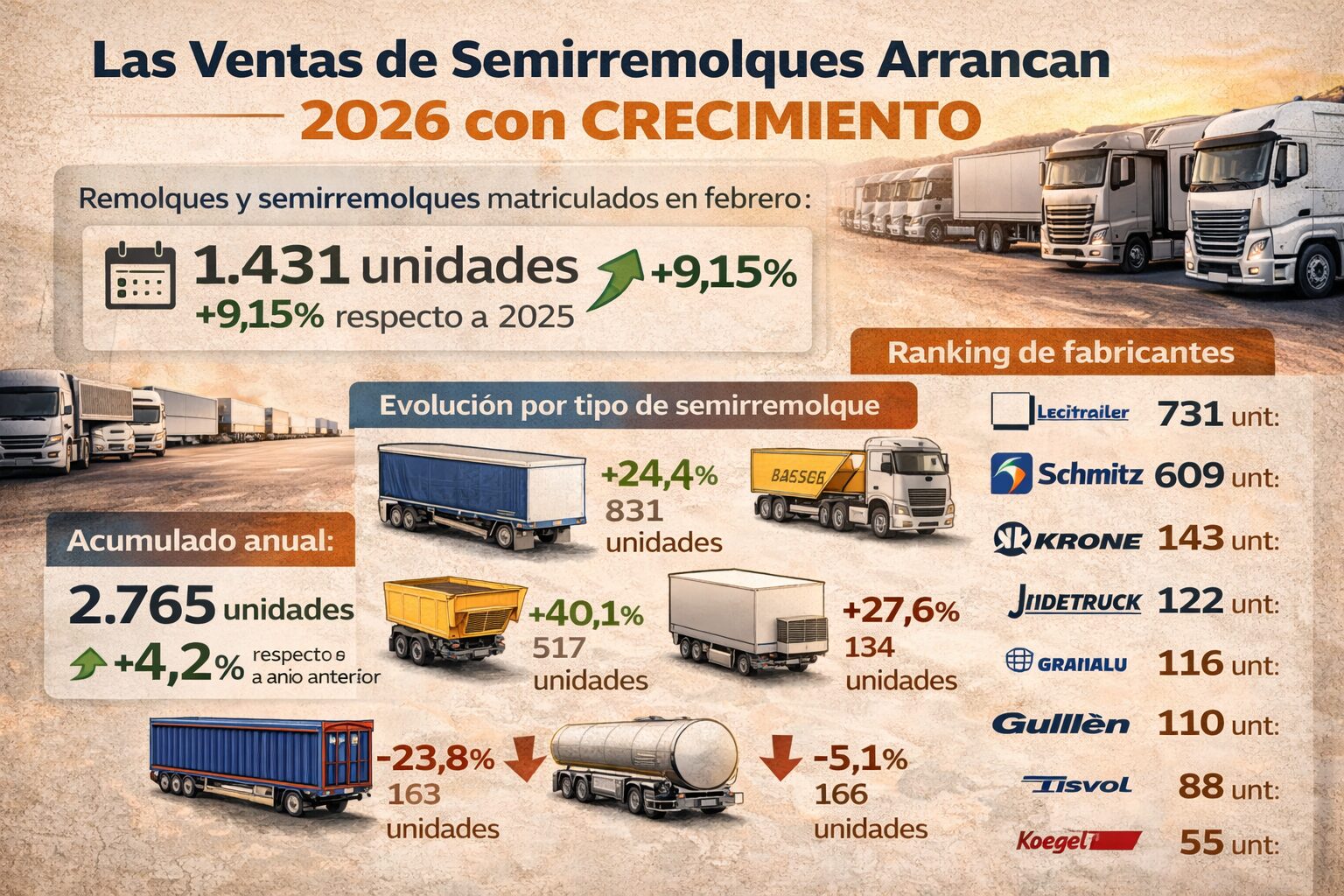 Las ventas de semirremolques arrancan 2026 con crecimiento